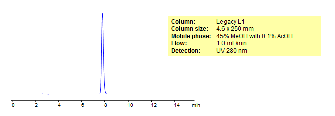 Chloramphenicol is a broad-spectrum antibiotic useful in treating conjunctivitis and many other infections. It is notable as an antibiotic for developing nations due to its low cost. It was analyzed on a Legacy L1 column which uses reverse-mode to retain hydrophobic compounds. Comparisons between Legacy L1 and Phenomenex columns are available upon request.