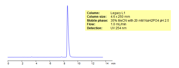 Promethazine is a drug used as an antihistamine, a sedative, and used to reduce motion sickness, and prescribed for insomnia. The reverse-phase column Legacy L1 was used to retain promethazine. comparisons between Legacy L1 and Phenomenex columns are available upon request.